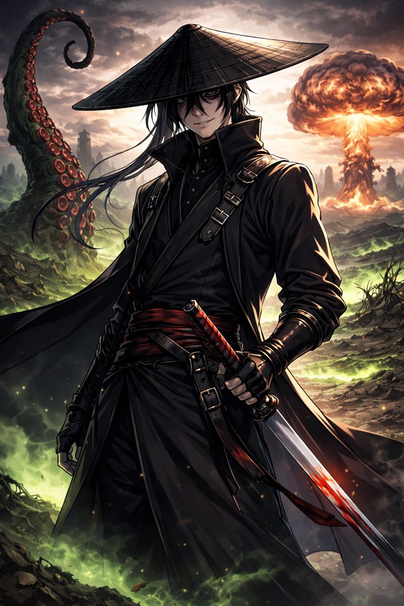 Négatron est né dans la poussière des Plaines Irradiées, là où l’on apprend tôt que le bruit attire la mort. Il a servi l’ombre avant de servir la terre, frappant quand il le fallait, disparaissant quand c’était nécessaire.Aujourd’hui, il forge. Non par repentir, mais par continuité : le fer dure plus longtemps que le sang.