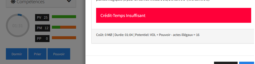 Mais le système ne détecte pas que je suis sous popo de rapidité, et me dit que c'est pas possible sous réserve de CT insuffisant.