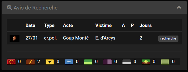 posté Aujourd'hui (11:11)Les drapeaux du listing des ADR ne sont pas les mêmes que ceux du compteur juste en dessous dans la fiche de perso.
