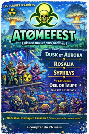Jeudi 26/03 : L'atomeFest, super fête dans les plaines irradiées organisée par l'empire ! Venez nombreux et laissez muter vos oreilles !