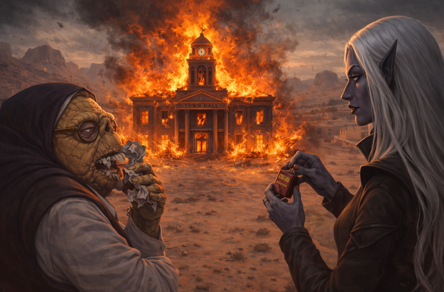 Rubrique N°6 : Traditions Mystisiennes Respectées !Une vieille tradition Mystisienne est respectée ce soir avec le brûlage d'urnes de vote qui seront ensuite jetées en mer brune !