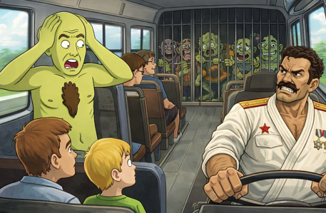 Dinglemire, Mutant Brun, refusant de passer à l'arrière du bus avec les autres mutant et voulant s'asseoir à l'avant !