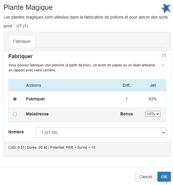 je me demandais où était l'erreur dans les affichages de temps requis pour fabriquer une plante magique ?