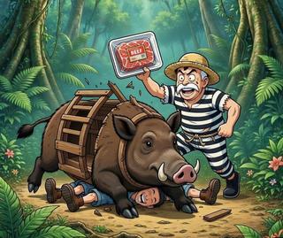 AprĂšs avoir terassĂ© la bĂȘte, notre aventurier s'apprĂȘte Ă  rĂ©colter son trĂ©sor, le fruit de son labeur, la nourriture tant attendu qui lui remplira l'estomac et lui remontera le moral