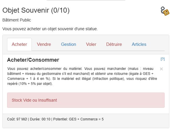 Il manque l'option produire pour les objets souvenir dans les statues (vue dans la statue de Lampe du Génie).