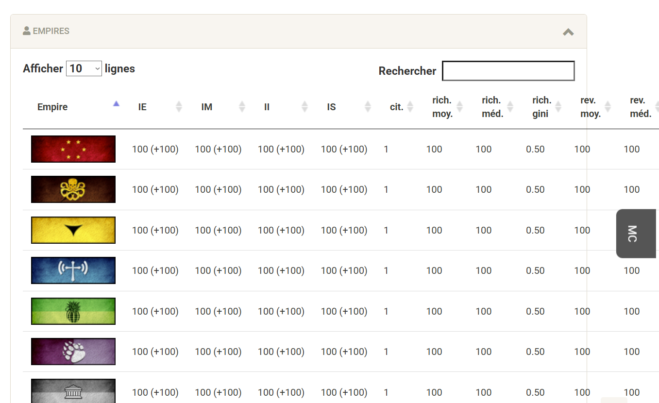 C'est dans le cas de l'utilisation de l'affichage de mon navigateur Opéra en zoom 110% ou plus, le tableau des Empires dans la partie Monde sort du cadre :