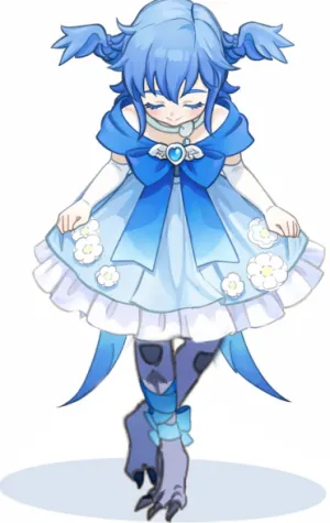 Son apparence en tout cas semble pour le moins ... exotique. Une étrange hybride aux allures aviaires, cheveux bleus et plumes mêlées ... et ses pieds, sont d'avantage des serres à vrai dire.