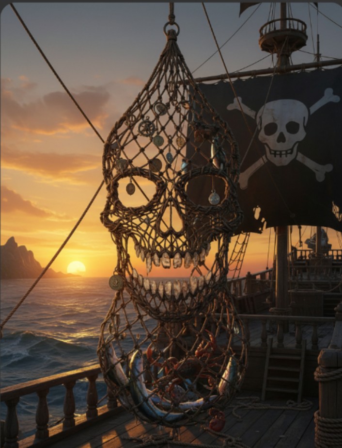Possibilité d'avoir des voiles et des filets de pêche de fabrication traditionnelle pirates.