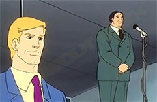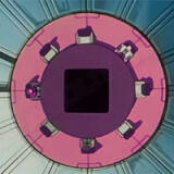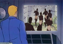 Les téléviseurs du Cybermonde, jusqu'ici silencieux, s'allume au son d'un curieux générique, tandis que le visage de Michel apparaît, souriant, comme s'il venait répandre le Bonheur Universel par ce biais. Derrière lui, un vaste et lumineuse scène au milieu de laquel deux grand divans rouges se tiennent, majestueux :