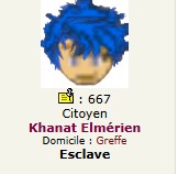 Ranael Avant-Hier (00:42)  Citoyen Khanat Elmérien Domicile : Greffe | Pendant ce temps je suis toujours au bar à attendre les gens qui viendraient faire des pourparlers. En attendant, j'entame une romance interdite et donc nécessairement enflammée avec César Preskessa.